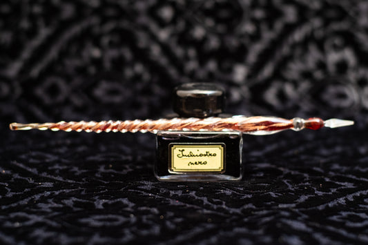 C'è un fascino senza tempo nel gesto di intingere un pennino nell'inchiostro. La nostra collezione celebra l’antica arte della calligrafia attraverso il connubio tra due materiali nobili: la trasparenza vibrante del Vetro di Murano e la leggerezza eterea delle piume naturali. Ogni penna è un pezzo unico, modellato a mano dai maestri vetrai veneziani o selezionato per la qualità delle sue venature naturali. Non è solo uno strumento di scrittura, ma un invito a rallentare e riscoprire il valore di ogni singola parola.