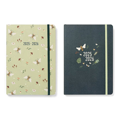 Diario 2025/26 Bumblebee A6 15x10,5 cm giornaliero. Collezione con copertina rigida ornata da illustrazioni di api, fiori e altri piccoli insetti, che le conferiscono un'aura fiabesca. Cucitura filo refe e nastro segnapagina. Interno multilingue (Inglese, Francese, Tedesco, Italiano, Olandese e Spagnolo), stampa a un colore. Diario 12 mesi, calendari annuali, informazioni personali, pagine note, festività nazionali, festività religiose, tavole di conversione, mappa fusi orari, lista obiettivi personali (self-care e salute, relazioni, studio, lavoro, finanze), fasi lunari, lista progetti, contatti, planner annuali e mensili.